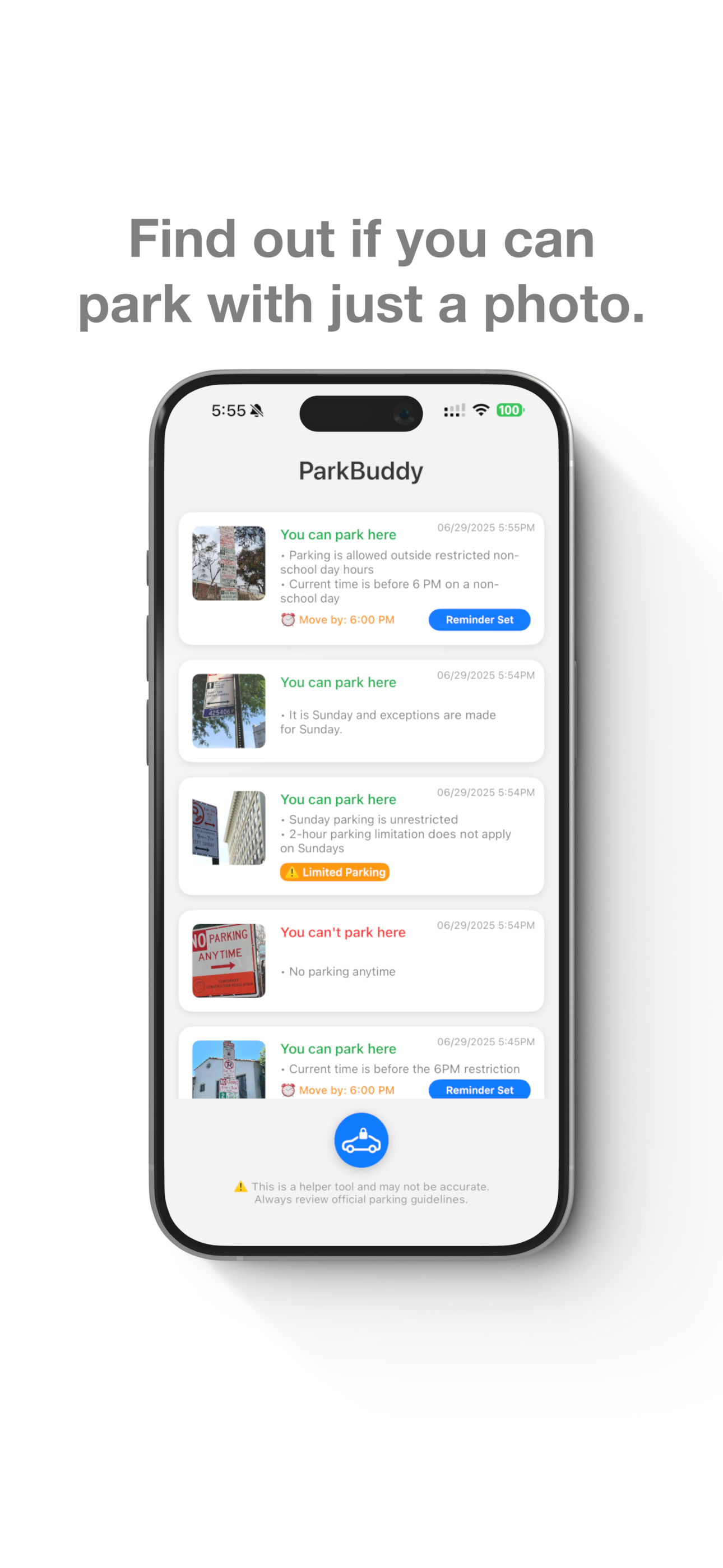 Simply point your camera at any parking sign and take a photo